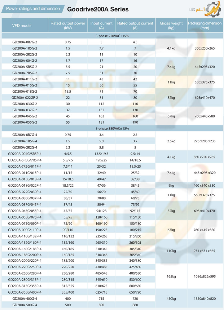اینورتر GD200A اینوت با ولتاژ ورودی 380-440 ولت و دارای استابلایزر در ورودی اینورتر میباشد, INVT GD200A توانایی کنترل و کاهش مصرف انرژی را دارد که پارامتر ها تا حد قابل توجهی مصرف برق را کاهش میدهند اینورتر GD200A سه فاز توانایی تغییر سرعت در محدوده 400 هرتز را دارد که این حالت تمام اینورتر های استاندارد میباشد.