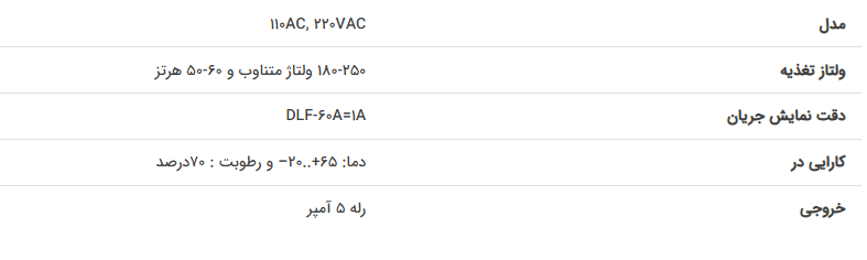 • نمایش جریان ، مقادیر تنظیمی و پیغام های خطا
